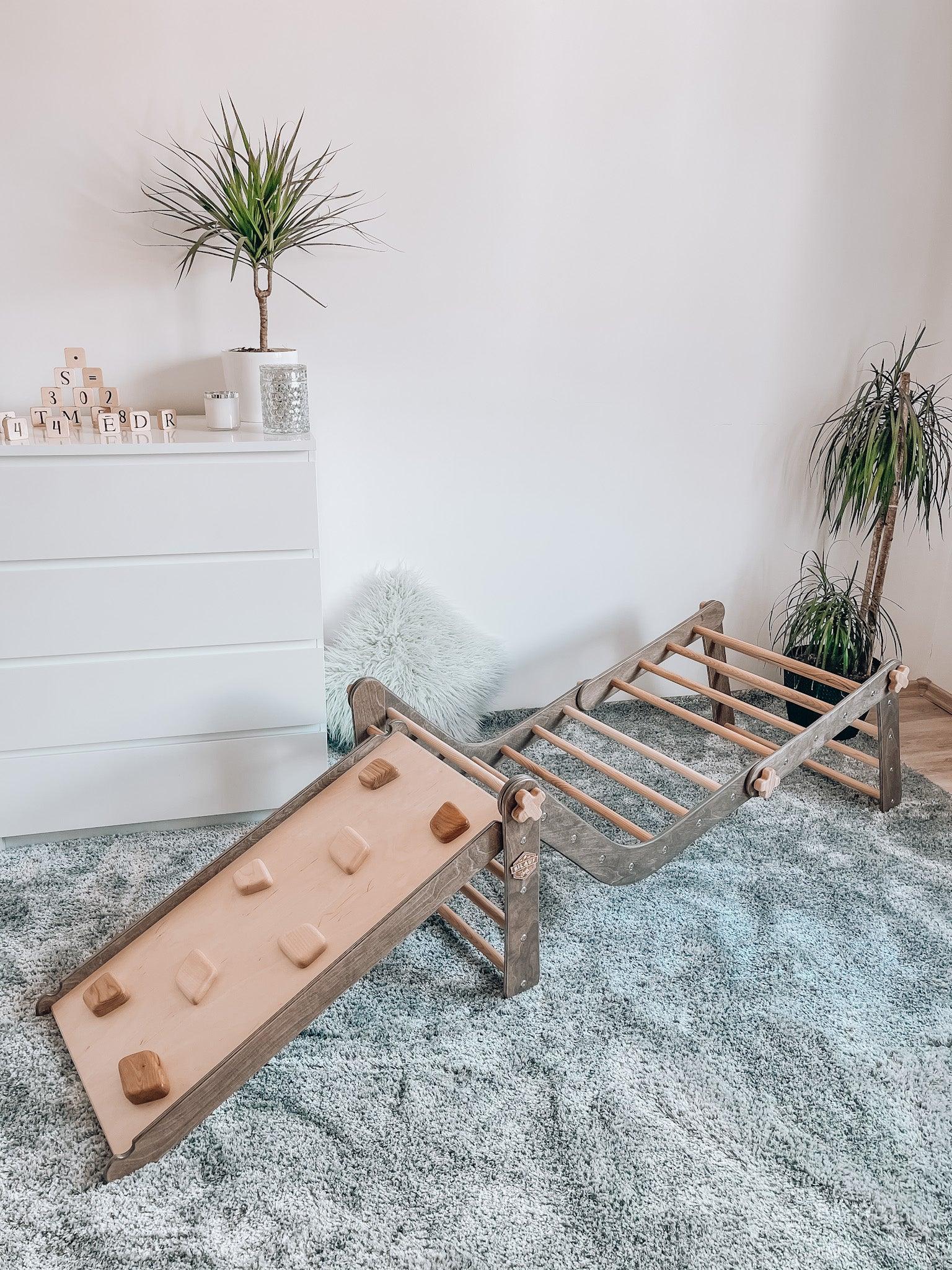 This Pikler triangle Chipmunk rock is a great way to get your kids moving and having fun! This rock is designed to help your children develop their motor skills and balance by providing them with a safe place to explore, climb and create. The triangle is made of strong and durable plywood which is able to fold in many different ways and can be adjusted every 45 degrees. This rock is a great way to bring fun and excitement to your child's playtime and is perfect for indoor or outdoor activities. With its folding capabilities, you can easily store the rock when not in use. Let your kids explore and have fun with this safe and educational toy.