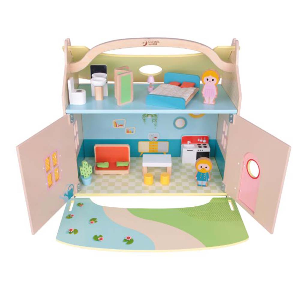What a nice dream house! Open its door, take down one roof as a front yard. Children can play with various modern and classy furniture to design their own room. The dining table can turn into a tea table. And the sofa can be unfolded to be a bed.