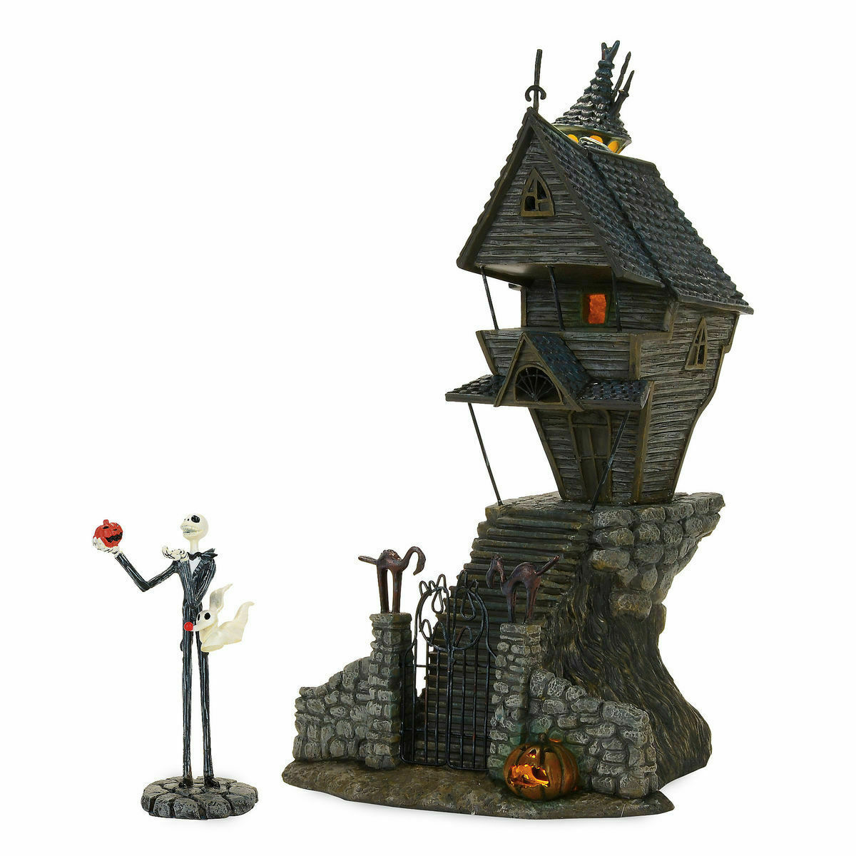 Complete with the ornate iron gate in front, this set of 2 includes a Jack figurine and his house on the hill.