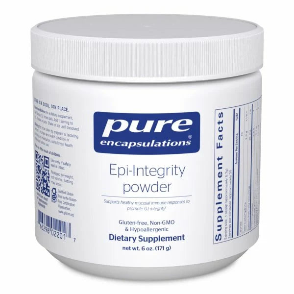 EpiIntegrity powder is designed to promote healthy modulation of mucosal immune response to support gastrointestinal (G.I.) integrity and function. Th2 modulation may be indicated when addressing immune balance in the G.I. tract. L-glutamine is an essential fuel for enterocytes (the cells that line the small intestine and colon), supporting cellular renewal, glutathione production and healthy, everyday tissue repair, while promoting healthy villous function. Arabinogalactan is a prebiotic fiber found in high concentrations in North American larch trees. It has been shown to increase the concentration of beneficial bacteria, such as Bacteroidetes and Faecalibacterium prausnitzii. Beneficial microflora are crucial for proper gut associated lymphoid tissue (GALT) function and development. Research suggests higher levels of F. prausnitzii are associated with healthy cytokine balance and G.I. function. In clinical trials, arabinogalactan has been shown to promote immune cell function. In a randomized three-week trial involving healthy adults, arabinogalactan potentiated the innate immune system, supporting key first-line defense. Perilla supports cytokine homeostasis of the G.I. mucosal tissue. In a randomized, controlled trial involving 50 individuals, 150 mg of Benegut Perilla frutescens extract twice daily offered statistically significant support for G.I. comfort. Research suggests that perilla also helps maintain cytokine balance and stabilize mast cells. Astragalus promotes cytokine balance and supports macrophage, natural killer (NK) cell and T-cell activity. Adaptogens like astragalus support physiological and cellular homeostasis and have positive effects on immune function and antioxidant defenses. Deglycyrrhizinated licorice (DGL) maintains intestinal comfort by supporting the protective mucosal lining.* Offers a unique broad-spectrum combination to promote healthy modulation of mucosal immune response to support G.I. integrity and function* Provides 2.4 g L-glutamine and 2.4 g arabinogalactan per serving Great-tasting natural strawberry-lemonade flavored powder Made with hypoallergenic, vegan ingredients