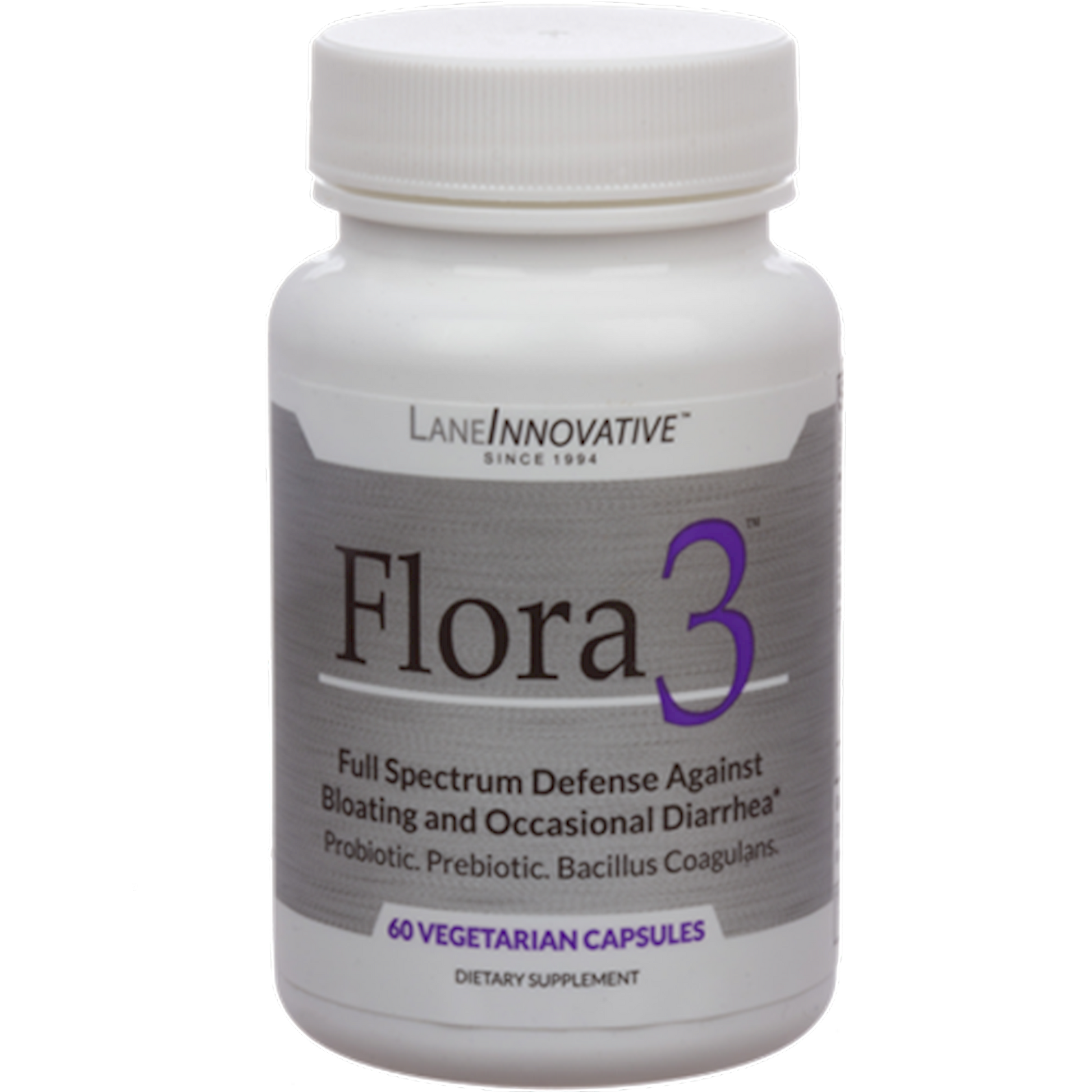 Flora3: Full Spectrum Support for Bloating and Occasional Diarrhea* A probiotic, prebiotic and bacillus coagulans in one. Features a unique probiotic, friendly yeast called Saccharomyces boulardii. S. Boulardii promotes, strengthens and maintains good bacteria in the digestive tract.* Does not need refrigeration.