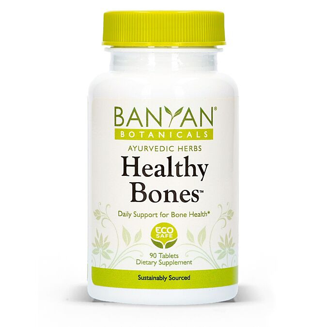 Daily Support for Bone Health* Natural source of calcium* Strengthens and rejuvenates bone tissue* Supports healthy joints* Promotes normal bone growth and density* Healthy Bones brings you the benefits of natural coral calcium with the added fortification of powerful Ayurvedic herbs traditionally used to strengthen and rejuvenate the bones.* Coral calcium is unique because it contains a molecular structure and mineral complex similar to that found in actual human bone, improving the bioavailability of the calcium.* Banyan Botanicals uses coral calcium that is sustainably and ethically sourced from old reefs that are no longer active and have been naturally pushed above sea level. Creating a synergy with the calcium, herbs arjuna, ashwagandha, and ginger assist in the absorption of the calcium by delivering it from the bloodstream and into the bones.* Beneficial to young growing bones as well as aging bone tissue, the herbs in this formula help maintain healthy bone density while gently kindling the digestive fire to support the body's natural toxin cleansing mechanisms.* Vata, which can disturb bones when imbalanced, particularly in the later years of life, is also balanced and grounded by the warm nourishing herbs in this blend.*