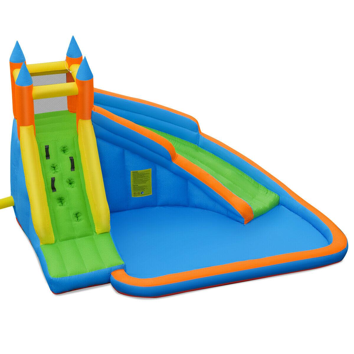 The inflatable water slide is a perfect way for children to stay cool in the summer sun.. Featuring a climbing ladder to the curved slide with large pool area, children can climb up and slide for hours. The mesh wall around the top of the ladder area ensures the children's safety whilst playing and adds ventilation while waiting their turn. With a hose pipe connector, the inflatable castle can be used as a waterslide to make children feel cooler during the hot summer. Note: requires an 680 air blower NOT included). If you are looking for such product, don't hesitate to buy it! Suitable for children aged 3 -10 years Garden stakes to secure the item to the ground Made from premium Oxford fabric, non-toxic and water resistant Multicoloured slide for instant appeal. With a hose pipe connector, the slide can be made into a waterslide. Climbing wall, water slide and splash pool for more fun Warning label showing many notices for safety Easy to transport and storage with the supplied carrying bag Mesh wall to protect children's safety Supplied with repair patches for maintenance CE certification Inflates and deflates quickly Specifications: Material: 210D,420D and 840D Oxford cloth, 75G net cloth and 190T polyester cloth Colour: Multicoloured (As shown) Overall dimension: 400 x 300 x 235 cm (L x W x H) Maximum number of children: 3 Maximum individual height: 120 cm Maximum combined weight limit: 90 kg Individual weight limit: 30kg Recommended age: 3-10 years old Recommended blower wattage: 680W (Not included) Net weight: 13 kg Gross weight: 15 kg Package includes: 1 x Inflatable water slide 1 x Carrying bag 1 x Repair kit 6 x Garden stakes 1 x Instruction manual