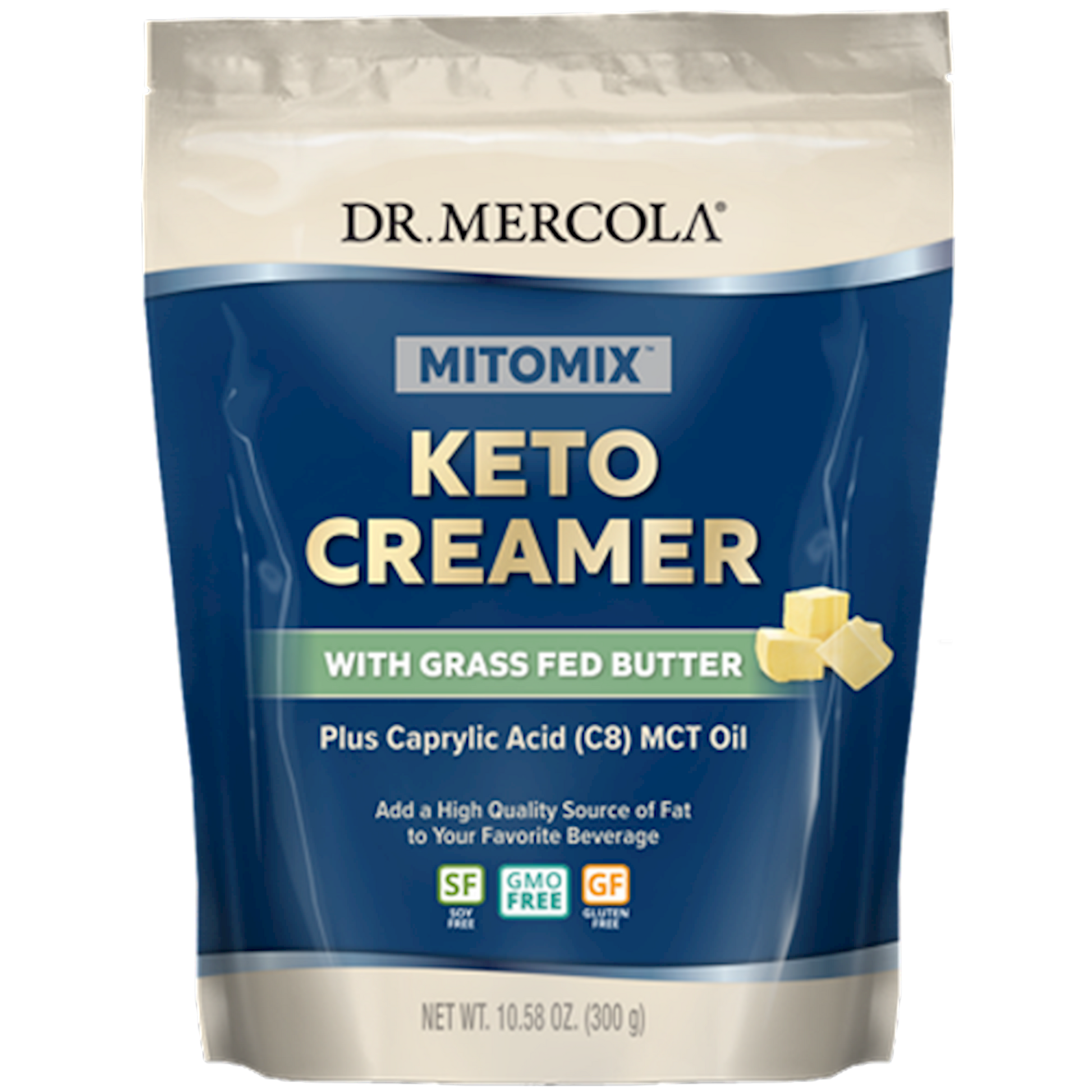 Dr. Mercola's MitoMix Keto Creamer provides an excellent source of high quality fat. Containing grass fed butter and caprylic acid (C8) MCT oil, each serving of Mitomix Keto Creamer contains 16 grams of fat an only two grams of net carbs. A perfect way to kick-start your ketogenic diet each day, Mitomix Keto Creamer can be mixed in with any hot or cold beverage, but is especially delicious with a cup of organic coffee to provide all day energy to your body and brain. Mix a scoop into your coffee with a blender or blender bottle to create a creamy, frothy delight. Add in a scoop of Dr. Mercola's Mitomix Ketogenic Blend to create the ultimate ketogenic pick me up. Mitomix Keo Creamer comes in a shelf stable, powder form for convenient on the go use.
