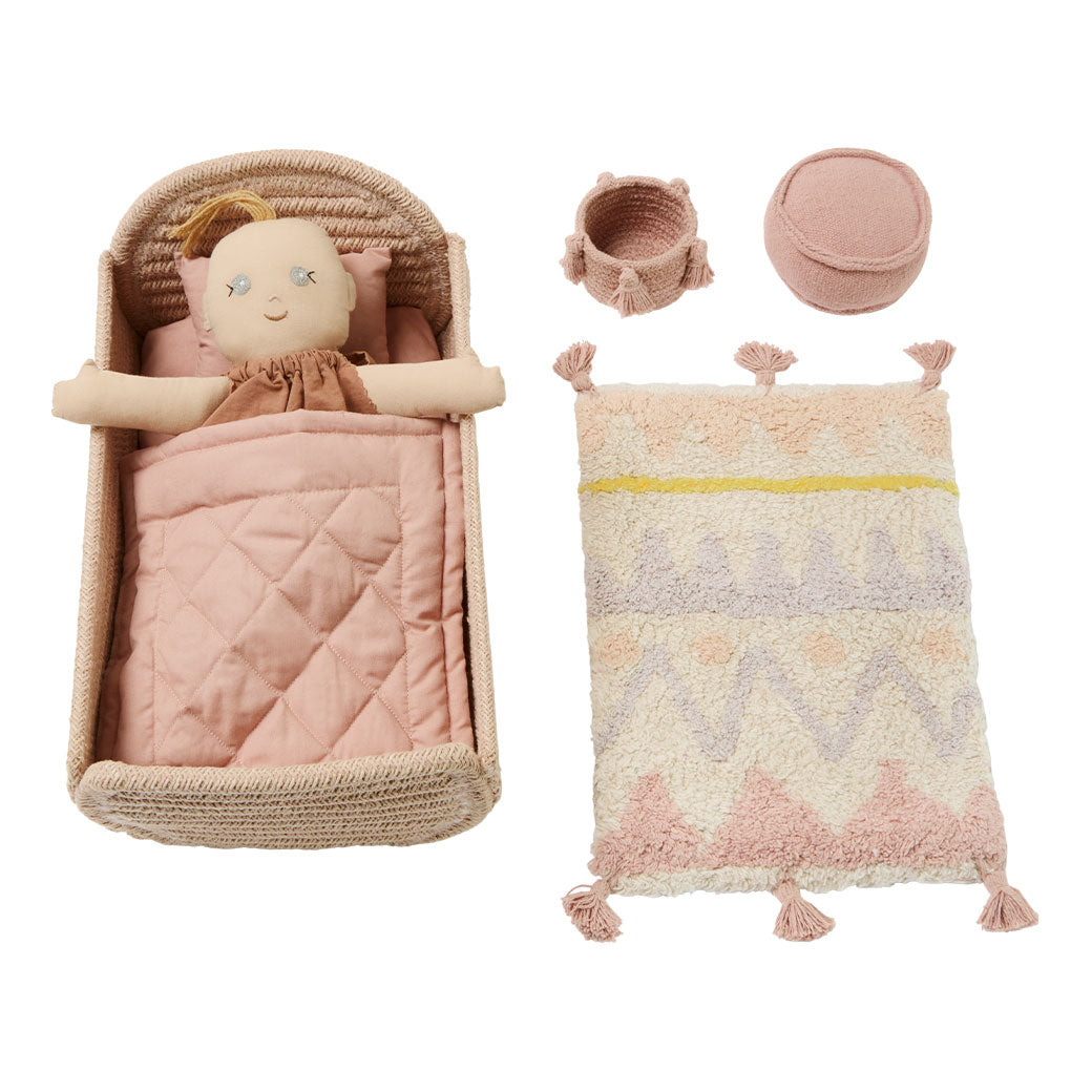 Mini Lorena Doll by Lorena Canals is the best friend your little one was looking for. She loves naps and has her own eco-friendly crib with all of the bedding! And come playtime, she has her own rug, basket, and pouf that are all handmade with lots of love! The Lorena Canals Mini Lorena Doll loves taking care of the environment so she is made from leftover fabric creating zero waste! She is truly a friend we all need!