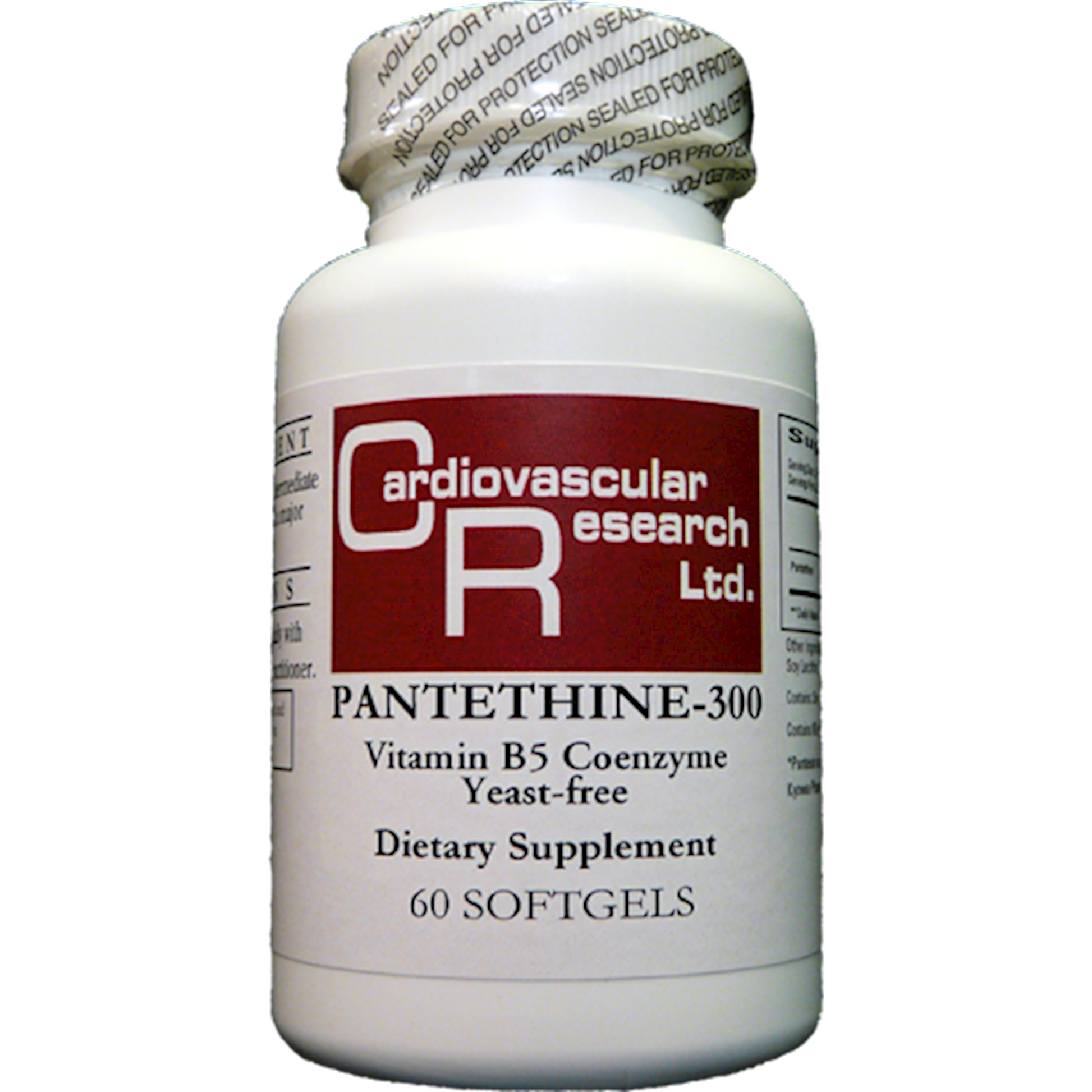 Dietary Supplement Pantethine-300 is a biologically active intermediate form of pantothenic acid (vitamin B5) and a major precursor of coenzyme A.