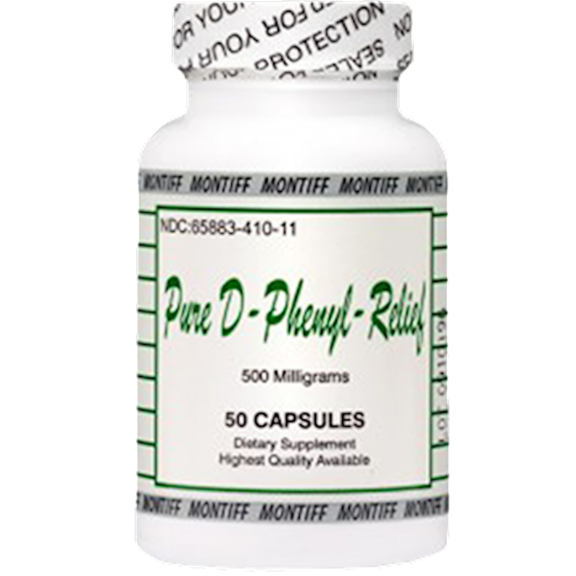 Montiffs D-Phenyl Relief contains 500mg of pure D-Phenylalanine. It is recommended for supporting endorphin levels.*