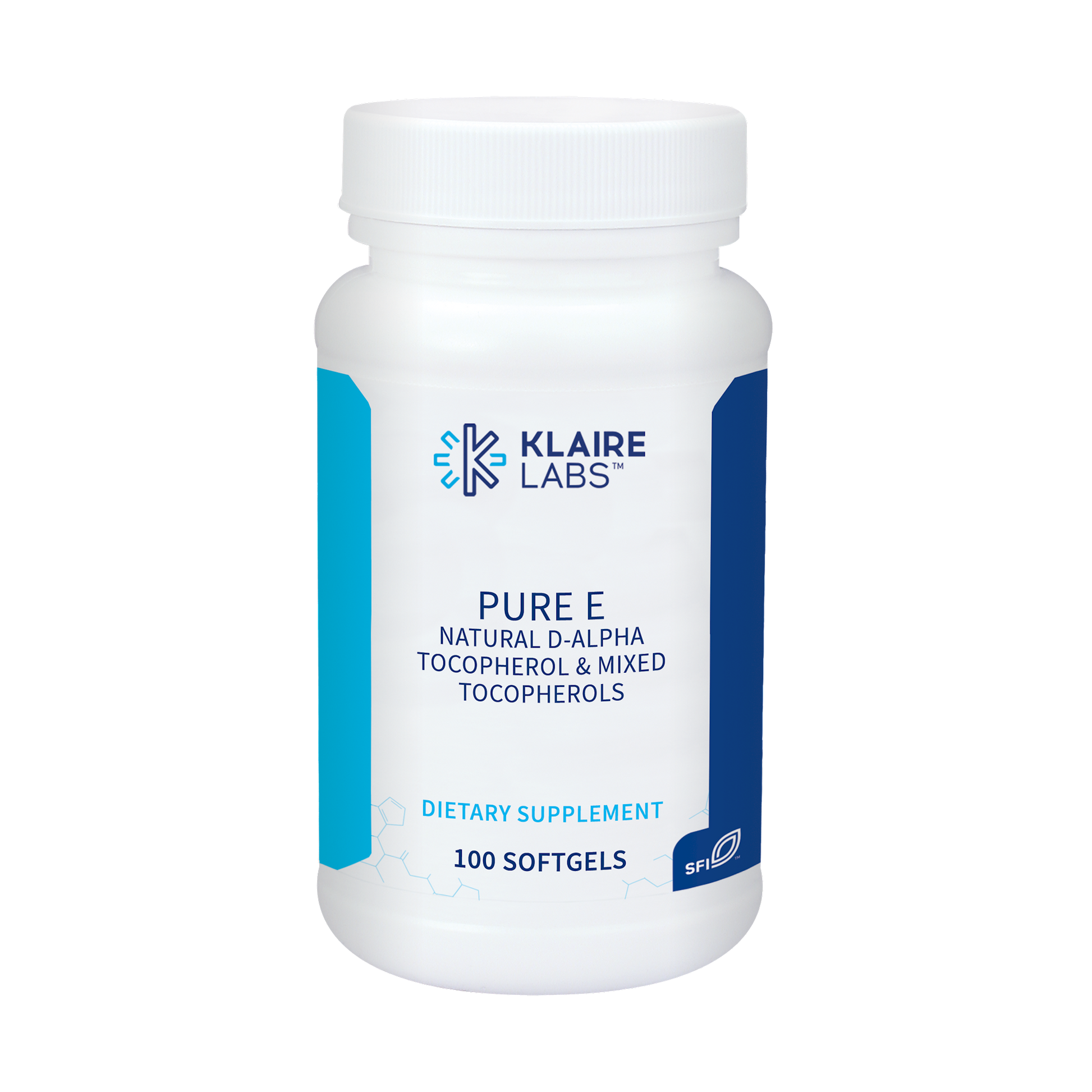 Vitamin E is important for tissue repair, circulation and blood clotting, healthy nerves and muscles, and proper functioning of all major organ systems.* It can also inhibit oxidation of lipids and formation of free radicals.* Pure-E is an all-natural, balanced, potent vitamin E supplement containing d-alpha tocopherol and mixed tocopherols derived from highly refined soy oil that has had soy protein (the allergenic component) removed. Each softgel provides approximately 195 mg of gamma-tocopherol, 78 mg delta-tocopherol, and 6 mg of betatocopherol. This supplement has been specifically formulated to be highly bioavailable and hypoallergenic.