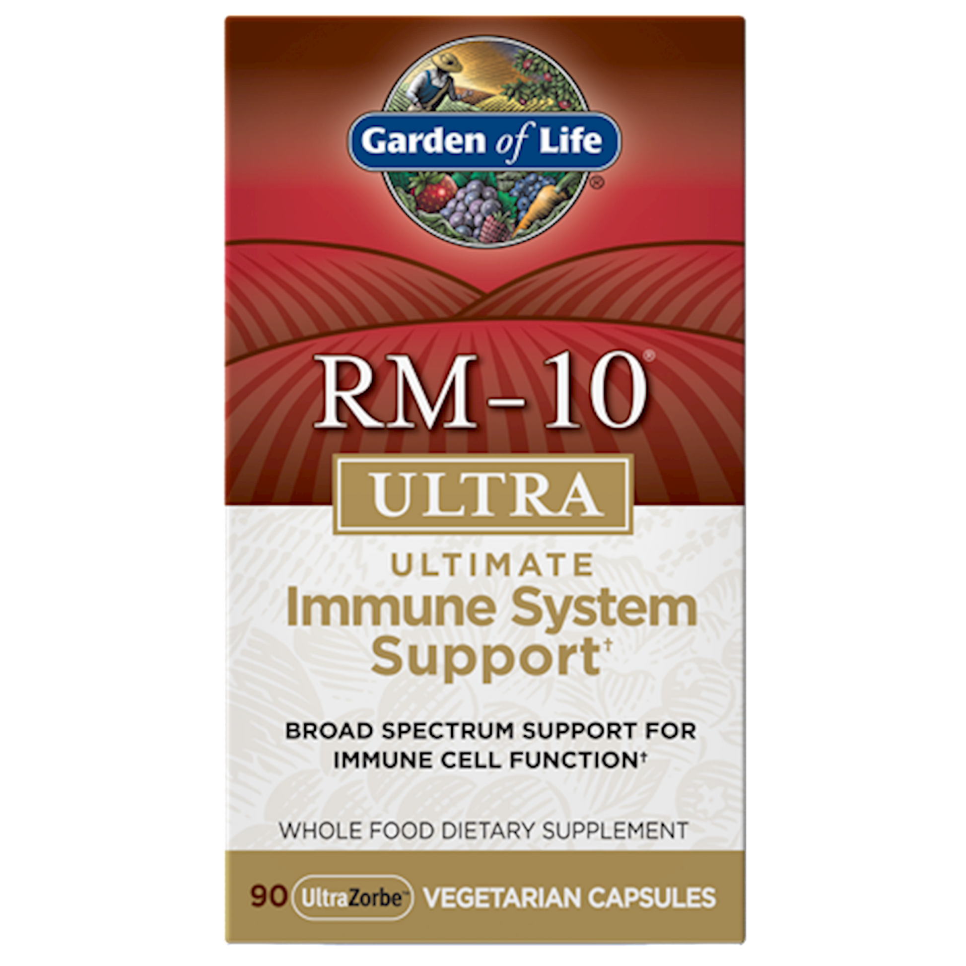 RM-10 ULTRA is designed for ULTIMATE Immune System Support It is made with Garden of Lifes original mushroom blend consisting of a unique combination of 10 unfermented mushrooms, but has additional ingredients which include a DNA Methylation Complex plus an added Immune System Support Blend with 4 mg of lycopene.* RM-10 ULTRA contains a proprietary blend of tonic mushrooms that have been carefully selected and cultivated to maintain their genetic integrity. Mushrooms have been used all over the world for their general health benefits for many centuries. RM-10 ULTRA is the ultimate immune system support* formula, containing organic mushrooms and other specially selected ingredients that provide broad spectrum immune support via multiple pathways: immune cell function support, immune cell metabolism support, methylation support and antioxidant support.* DNA methylation is a normal biochemical process that occurs in the body, important in regulating cell identity and growth. RM-10 ULTRA contains a full range of nutrients that support healthy DNA methylation, a requirement to support optimal health.* These nutrientsbetaine, vitamin B-2 and folic acidall play a critical role in normal methylation by supporting the bodys conversion of homocysteine into methionine, a key donor to cellular methylation.* RM-10 ULTRA also contains L-Theanine, a natural amino acid from green tea, and selenium, produced using Garden of Life proprietary Poten-Zyme fermentation process. L-Theanine provides support for healthy gamma delta T cell presence in the body, important for supporting immune function and host defense.*Selenium helps to support optimal glutathione production, an important factor to support immune health.* The lycopene in RM-10 ULTRA helps support your body against free radical and supports the healthy function of multiple cells and organs including the liver, prostate and thyroid.* RM-10 ULTRA Immune System Support Benefits: Offers ultimate immune system support* Contains organically grown mushrooms Offers broad spectrum support for immune cell function* RM-10 ULTRAultimate immune system support formula, containing mushrooms and other specially selected ingredients that provide broad spectrum immune support via multiple pathways: immune cell function support, immune cell metabolism support, methylation support and antioxidant support.*