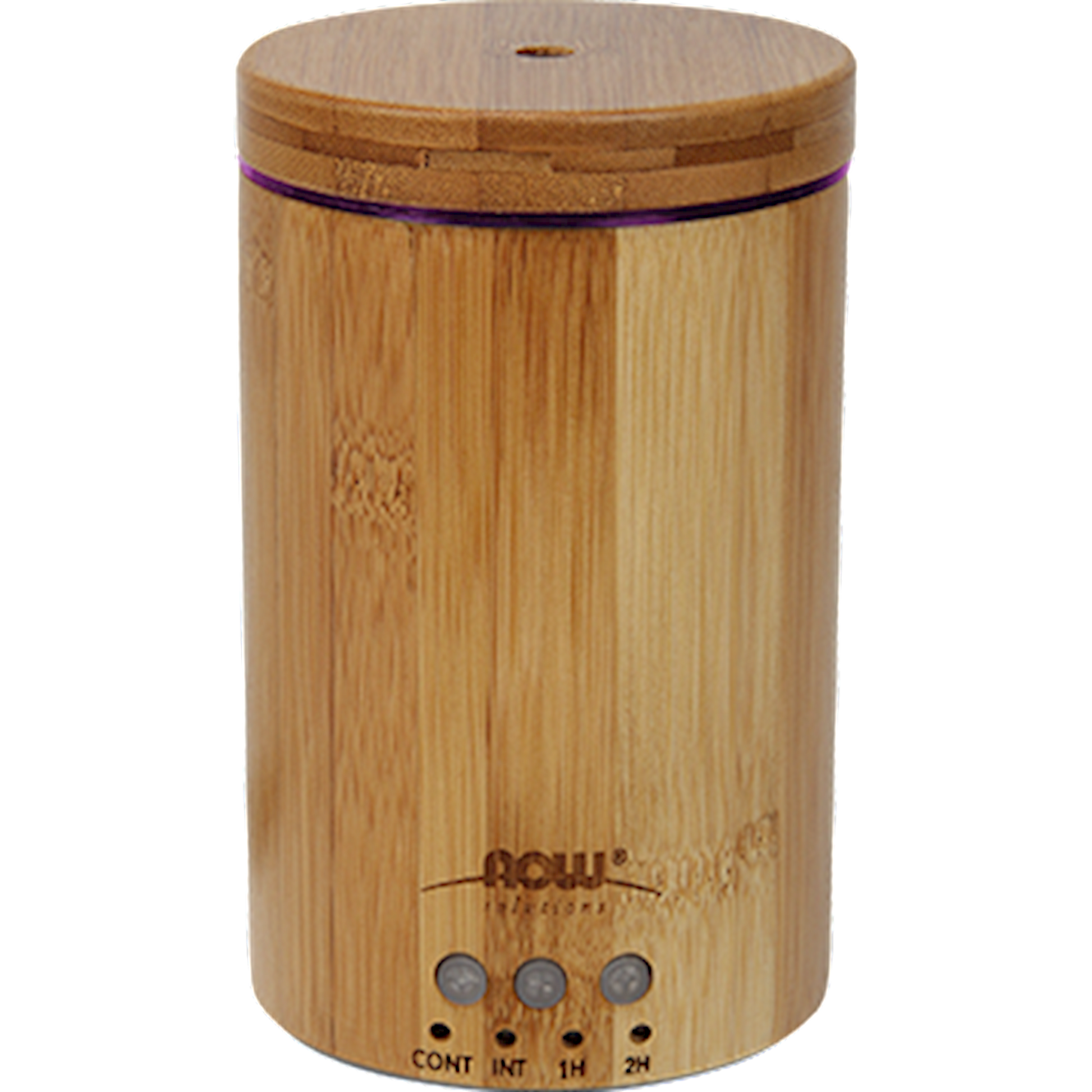 NOW Solutions Real Bamboo Ultrasonic Oil Diffuser unites aromatherapy with modern scientific innovation to create an essential oil diffuser that's the perfect complement to your home or office. This attractive diffuser is BPA-free and utilizes high-frequency ultrasonic electrical vibrations to create an ultra-fine mist. This diffusion method doesn't utilize heat, which maintains essential oil integrity and holistic properties. Specifications: Model: 7521 Color: Bamboo wood cover and base Capacity: 150 ml / 5 fl.oz Run Time: Up to 14 Hrs Intermittent / 7 Hrs Continuous Features: Timer setting 1 Hr / 2 Hr, int/cont. 3 changing LED lights: Blue, Green & Red Coverage: 400 square feet Rated Power: 12W Adapter Power: 100-240V, 24V 0.5A Just add tap water and essential oils Extremely quiet and easy to clean Cool steam / no heat involved / no risk of burns Automatically shuts off 2 Timer Settings (1 Hr / 2 Hr) Runs up to 14 hrs intermittent / 7 hrs continuous Rotating LED Lights 1 Year Warranty